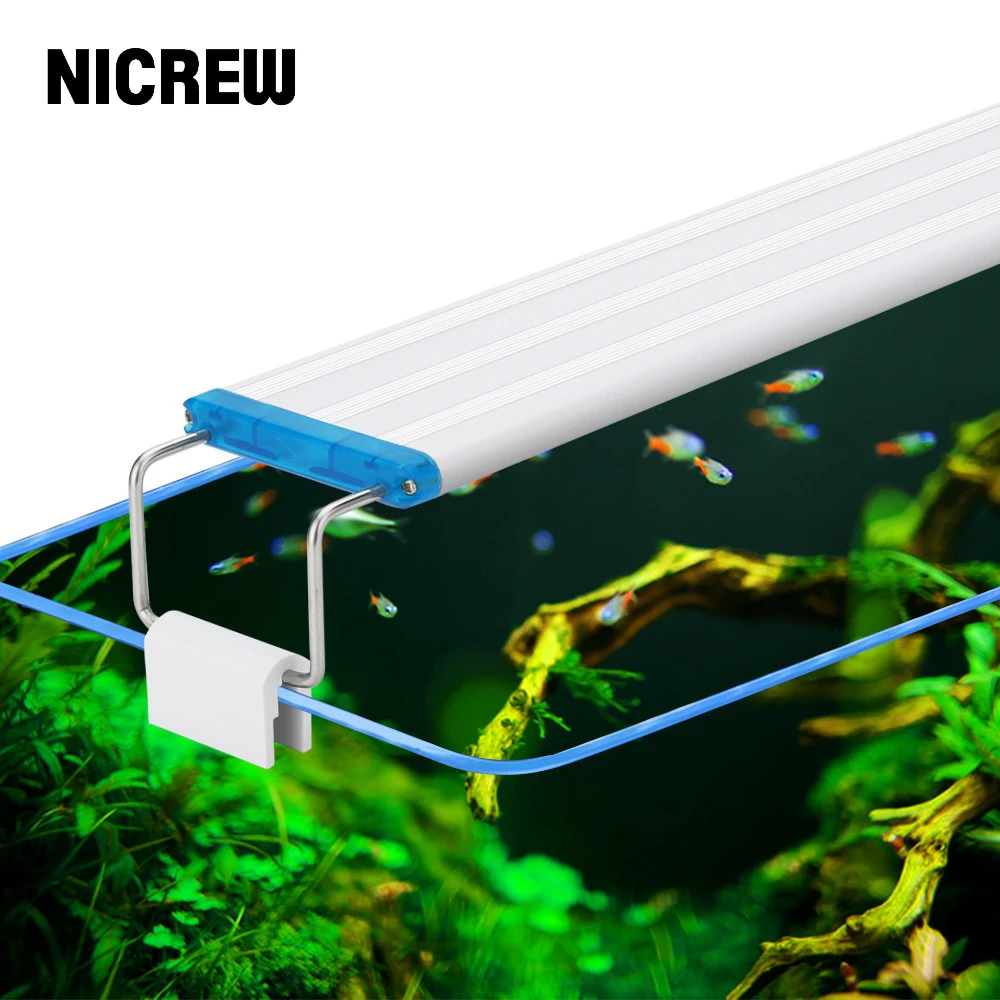 Here is one for aquarists on a low budget; Nicrew classic aquarium led light for planted aquarium. By using three lighting modes you can create a spectacular atmosphere that really showcases the fish and creates a beautiful addition to any fish room. Mounting arm is perfect for nano sized aquariums that need a tank mounted bracket to support their light. But, the finnex clip light has a gooseneck and attaches to the side of an aquarium using a clamping system. The nicrew classic led lighting comes on an extendable bracket which can be adjusted to suit any size fish tank. The nicrew light (directly in front) sits low while the finnex stingray clip light (in the back) hangs from a flexible gooseneck. The light is on/off only and can be used with a wall timer. Adjustable metal brackets to fit aquarium tank from 36 inches to 48 inches, light fixture: By using three lighting modes you can create a spectacular atmosphere that really showcases the fish and creates a beautiful addition to any fish room. Light adjustments need to be made using the buttons on the light itself as there is no wifi. Nicrew ultra slim led clip light nano clamp light for planted tanks 6 watt nicrew aquarium.i like using a battery as it is not always easy to get 120v from anywhere near the part i am trying to see, plus the wires tend to get in the way. The included light stand is simple to assemble and seems sturdy enough.